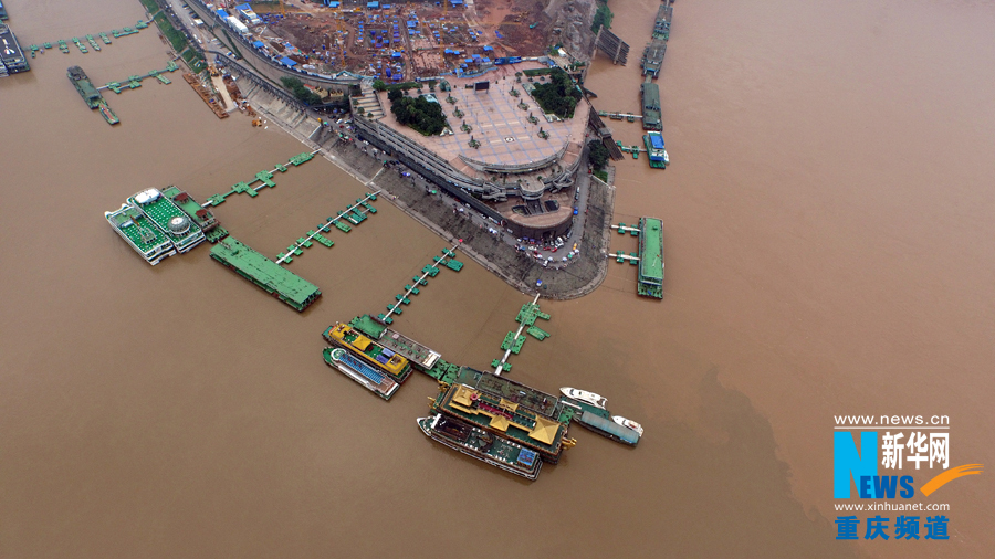 7月1日,今年長(zhǎng)江、嘉陵江最大洪峰過(guò)境后的重慶朝天門(mén)碼頭。 本組圖片由新華網(wǎng)新聞無(wú)人機(jī)隊(duì)拍攝tsz安康新聞網(wǎng)