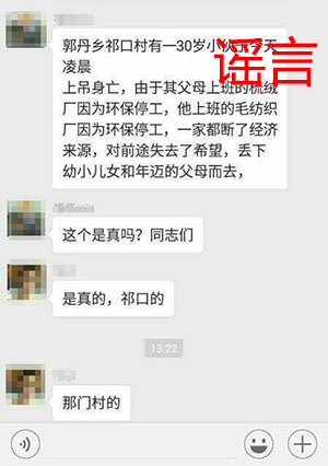 【真相】9月19日,保定警方表示,經(jīng)查,蠡縣郭丹鄉(xiāng)祁口村的確發(fā)生一起村民上吊自殺事件,但死者是因?yàn)榉蚱廾苡?月16日酒后上吊自殺。網(wǎng)傳信息為夏某(男,54歲,蠡縣人)所發(fā),夏某對(duì)他在微信群發(fā)布虛假信息的行為供認(rèn)不諱,公安機(jī)關(guān)對(duì)夏某處以行政拘留10日以及罰款500元的處罰。[詳情]
