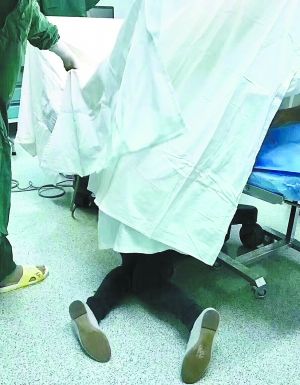 事發(fā)當(dāng)晚,王媚半跪在病床床尾一角,右手一直托舉著產(chǎn)婦腹中的胎兒。
