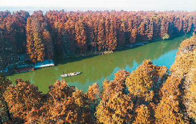 江蘇省興化市水上森林是人工生態(tài)林,以“林中有水、水中有魚(yú)、林內(nèi)有鳥(niǎo)、河流回環(huán)、杉樹(shù)林立”的景觀聞名遐邇,吸引不少游客乘船游覽。dCG安康新聞網(wǎng)