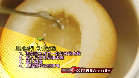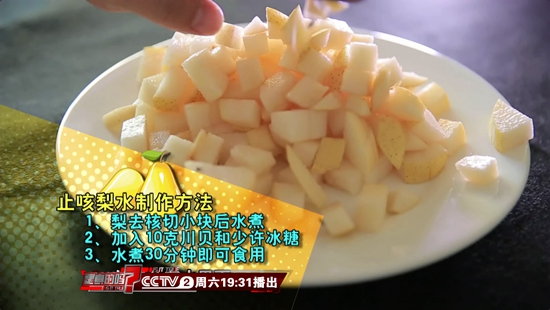 劉琳告訴我們:“梨有秋梨,雪花梨,鴨梨等,通常情況下都可以,但其中以雪花梨為最優(yōu)。選擇梨時應(yīng)盡可能選擇梨皮較厚且較粗糙的,因為梨皮作為藥材的治療作用是不可小覷的。加工過程中應(yīng)保留梨皮,去籽,將梨切為小塊,然后配以少許川貝、冰糖一起放入水中煮至半小時,即可飲用!