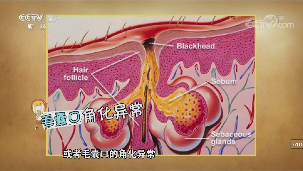 鮑身濤說:“內(nèi)因主要是和內(nèi)分泌激素有關(guān)聯(lián),主要是雄性激素分泌過旺,皮脂腺分泌過多,皮脂腺導(dǎo)管阻塞,也就是毛孔阻塞引起的!
