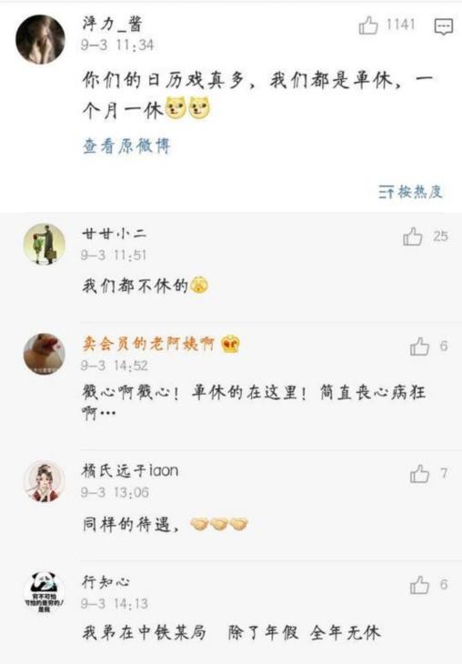 還有網(wǎng)友吐槽,“你們的日歷戲真多,我們都是單休”;“平時(shí)單休就算了,節(jié)假日還得值班”。3日下午兩點(diǎn)過,記者在成都IFS采訪到職業(yè)是醫(yī)生的楊小姐,她表示節(jié)假日一般只放法定休假的那幾天,其他時(shí)間要值班,今年兩個(gè)假期只休4天,輪休的話可以多兩天。“我老家在內(nèi)江,放假打算回家陪陪家人,順便參加一場(chǎng)婚禮。”