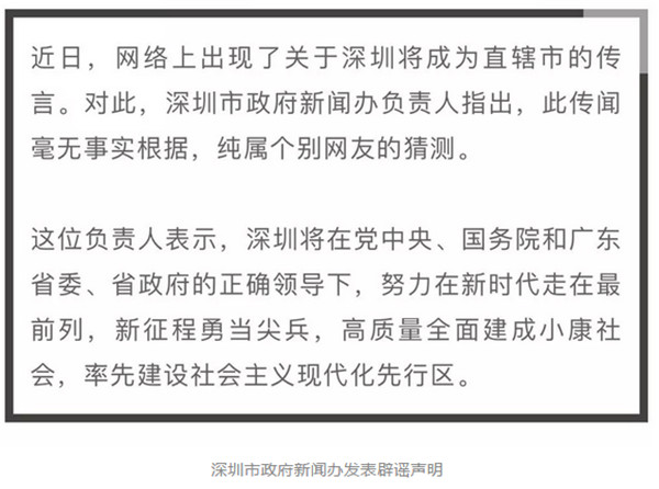 近日,網(wǎng)絡(luò)上出現(xiàn)了關(guān)于深圳將成為直轄市的傳言。