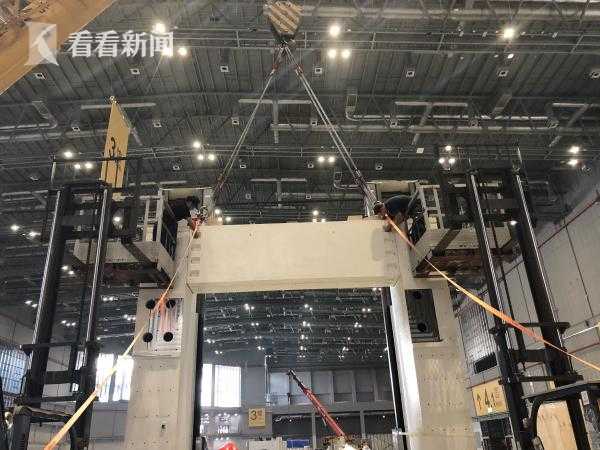 首屆中國國際進(jìn)口博覽會(huì)最大的展品,金牛座龍門銑床今天龍門構(gòu)架完成,預(yù)計(jì)下周二整個(gè)設(shè)備將完成安裝。