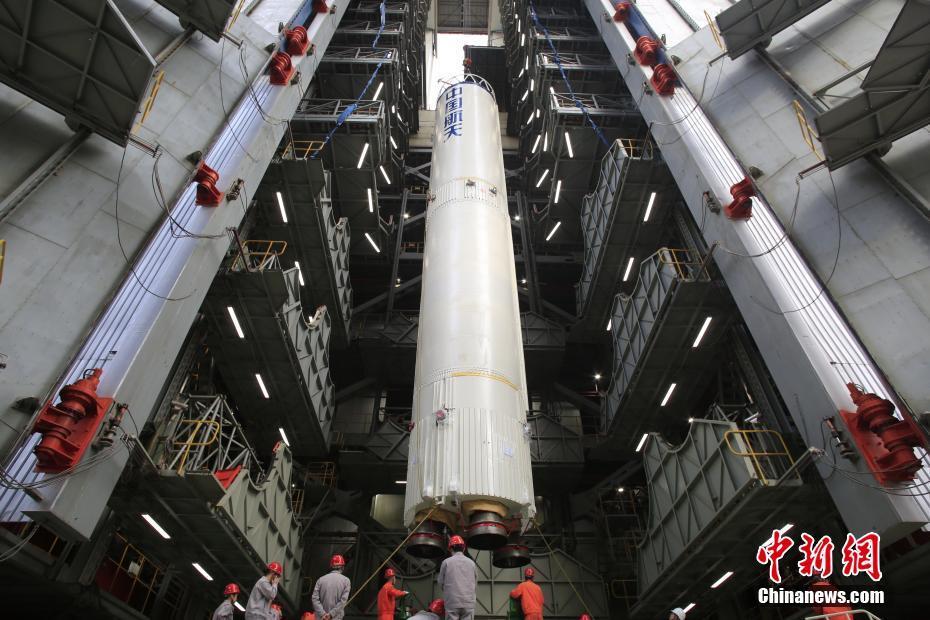 11月1日深夜23時(shí)57分,中國(guó)在西昌衛(wèi)星發(fā)射中心用長(zhǎng)征三號(hào)乙運(yùn)載火箭,成功發(fā)射第41顆北斗導(dǎo)航衛(wèi)星。這顆衛(wèi)星屬于地球靜止軌道衛(wèi)星,是中國(guó)北斗三號(hào)系統(tǒng)第17顆全球組網(wǎng)衛(wèi)星,也是北斗三號(hào)系統(tǒng)首顆地球靜止軌道衛(wèi)星。圖為衛(wèi)星發(fā)射前,火箭在發(fā)射場(chǎng)進(jìn)行吊裝(資料圖片)。中新社發(fā) 史嘯 攝