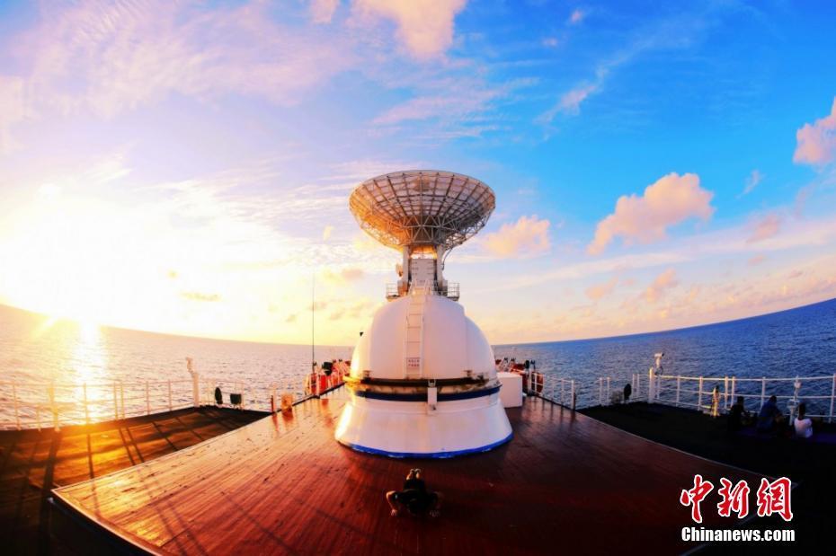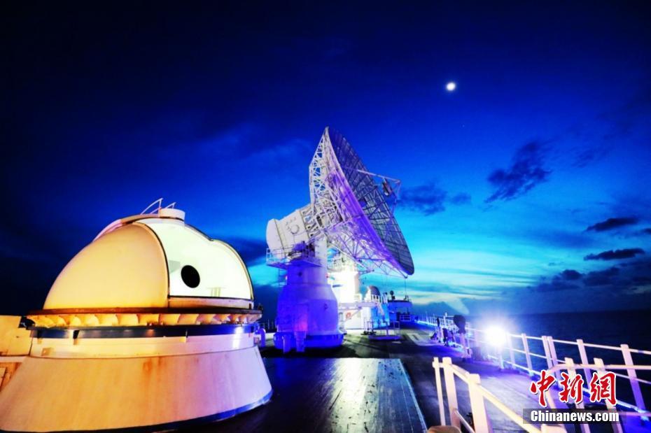 火箭升空飛行20多分鐘后,遠(yuǎn)望3號(hào)船在距離祖國(guó)萬(wàn)里之遙的大洋深處及時(shí)發(fā)現(xiàn)并成功捕獲目標(biāo),船載USB統(tǒng)一測(cè)控系統(tǒng)迅速接收到火箭遙測(cè)參數(shù),并及時(shí)處理傳送至西安衛(wèi)星測(cè)控中心、西昌衛(wèi)星發(fā)射中心,為中心判斷火箭飛行狀態(tài)提供重要依據(jù);兩套船載航天測(cè)控設(shè)備同時(shí)對(duì)火箭及衛(wèi)星開(kāi)展測(cè)量工作,并及時(shí)、準(zhǔn)確計(jì)算向西安衛(wèi)星測(cè)控中心提交了高精度數(shù)據(jù),整個(gè)海上測(cè)控過(guò)程持續(xù)近10分鐘,為火箭三級(jí)二次關(guān)機(jī)、星箭分離等一系列關(guān)鍵動(dòng)作提供了有力測(cè)控支撐。圖為深夜,遠(yuǎn)望3號(hào)船精準(zhǔn)測(cè)控。 高超、何露東杰/文 亓創(chuàng) 攝