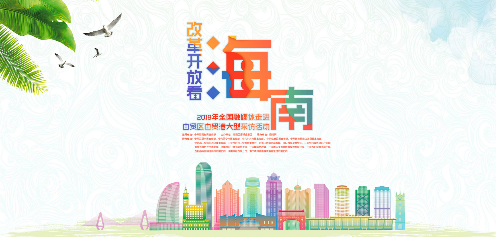 本次活動活動由中共海南省委宣傳部指導(dǎo),海南日報報業(yè)集團主辦,南海網(wǎng)承辦,中共三亞市委宣傳部、中共萬寧市委宣傳部、中共東方市委宣傳部、中共臨高縣委宣傳部、中共陵水黎族自治縣委宣傳部、中共昌江黎族自治縣委宣傳部;三亞市科技工業(yè)發(fā)展委員會、五指山市旅游商務(wù)局、?谑忻裼慰椭行摹⑷齺喼锌七b感信息產(chǎn)業(yè)園、海南熱帶野生動植物園、海南分界洲島旅游區(qū)、三亞國際免稅城、三亞市天涯海角旅游發(fā)展有限公司、三亞吉陽迎賓海鮮廣嘗五指山中部旅游投資有限公司、海南核電有限公司、海南森林城市酒店等聯(lián)合協(xié)辦。