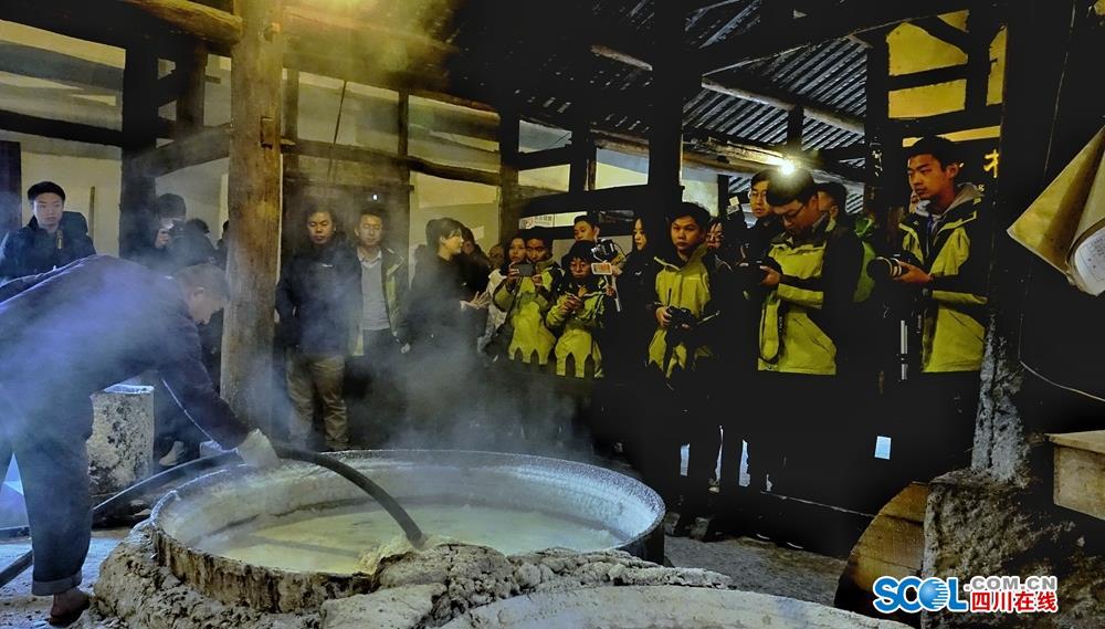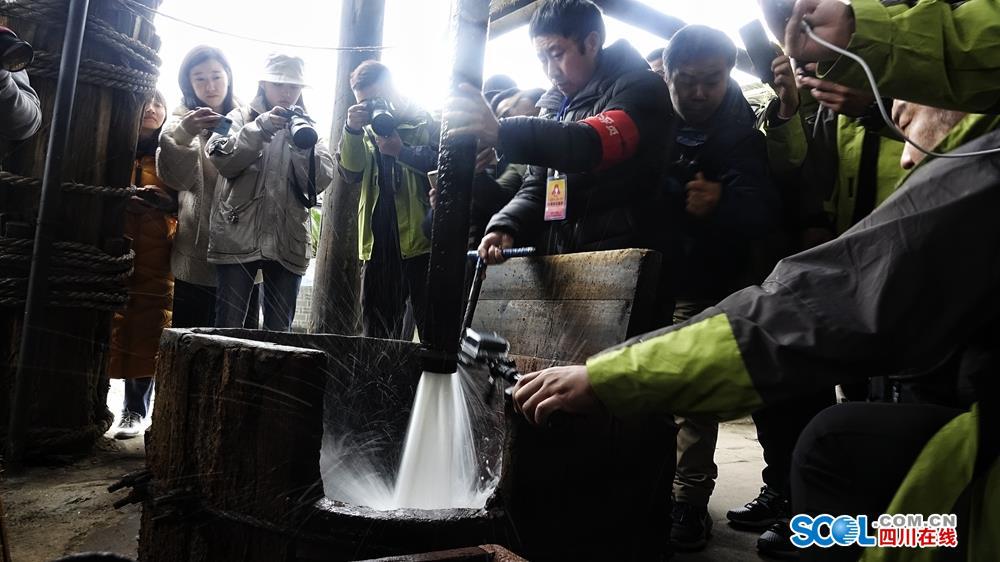 四川在線消息(記者 鄧童童 楊琴 秦勇 攝影 華小峰)在世界第一口超千米深井畔直播古法制鹽過程,駕駛無(wú)人機(jī)換一個(gè)角度參觀“東方龍宮”。12月9日下午,“川躍四十年 再瞰新天府”媒體團(tuán)打卡自貢旅游網(wǎng)紅地。