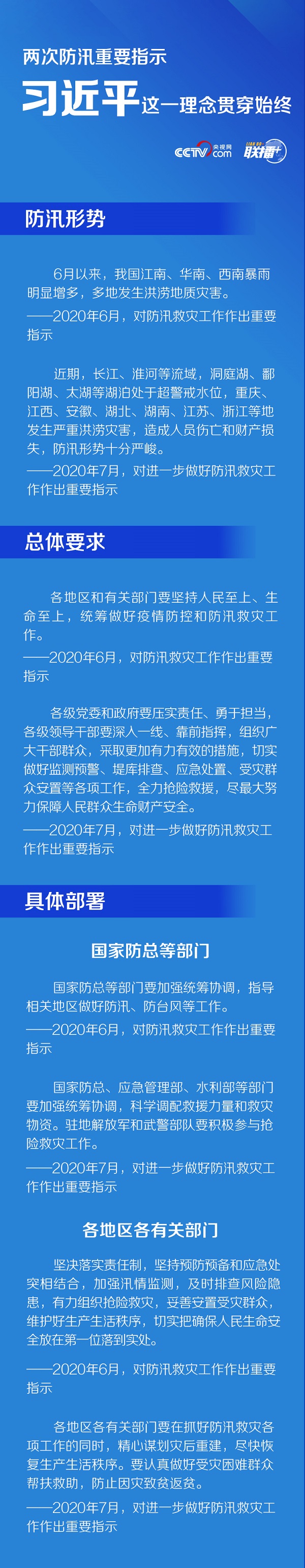 這是習(xí)近平總書記近期第二次對防汛救災(zāi)工作作出重要指示。在6月作出的重要指示中,總書記要求,“各地區(qū)和有關(guān)部門要堅持人民至上、生命至上,統(tǒng)籌做好疫情防控和防汛救災(zāi)工作”“切實把確保人民生命安全放在第一位落到實處”。