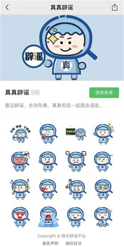 我為自己設(shè)計了一個可愛的卡通形象——真真,在微信表情商店上線了16款表情,讓辟謠“動起來”,在指尖傳遞正能量。同時,我還推出了“真真說”系列辟謠短視頻,用生動可愛的方式將辟謠知識傳遞給大家,寓教于樂。