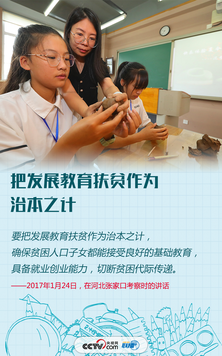 習(xí)近平總書記曾在多個場合強(qiáng)調(diào)教育扶貧的重要意義,希望通過教育讓同學(xué)們認(rèn)識到造成貧困的原因,找到解決貧困的辦法,從而“立鴻鵠志,做奮斗者”,以實際行動證明自己“不愧為大有希望、大有作為的一代”。