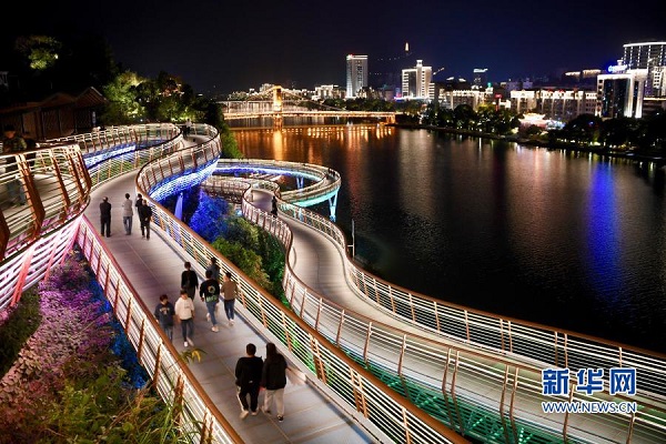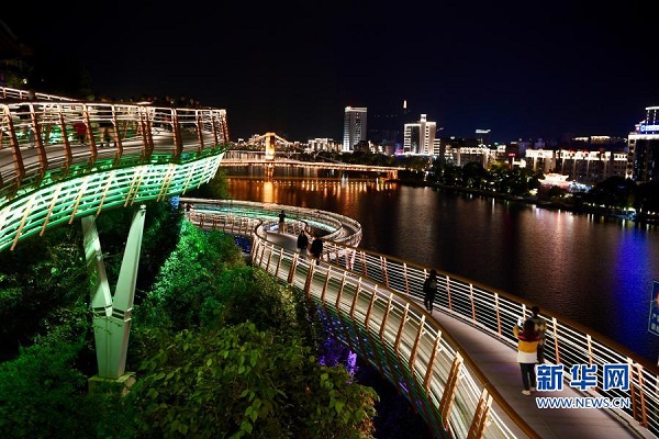 近年來,福建省三明市沙縣以虬龍橋棧道、七峰疊翠公園、凝翠閣、燈光秀等夜景工程為支撐,結(jié)合當?shù)貍鹘y(tǒng)美食文化,大力發(fā)展夜間餐飲、夜景旅游等“夜經(jīng)濟”,成為積聚人氣、推動經(jīng)濟社會發(fā)展的新引擎。