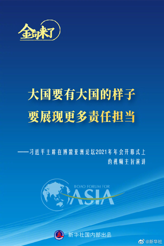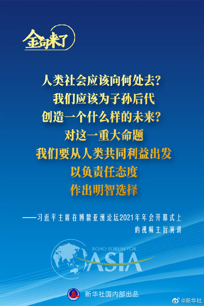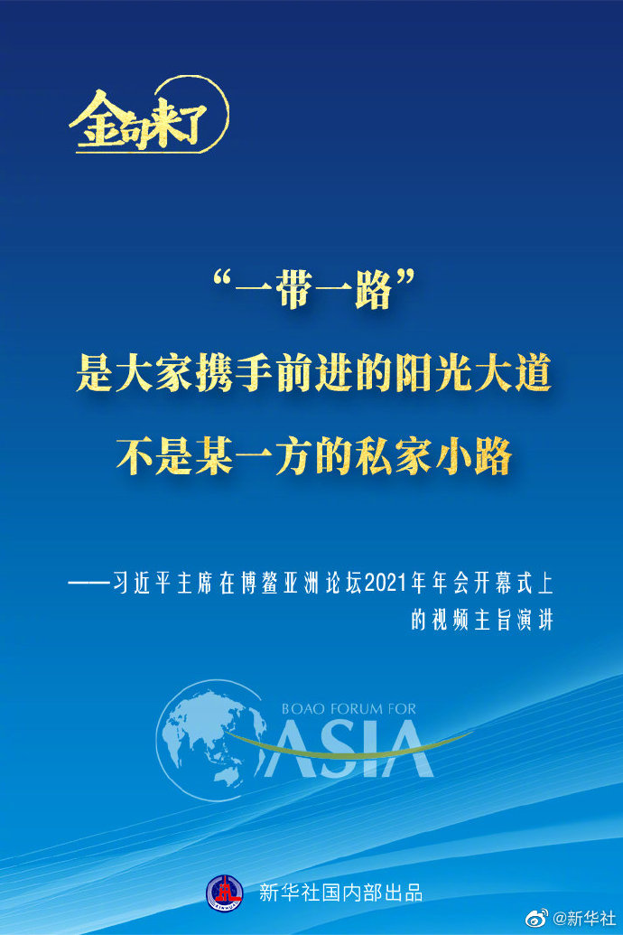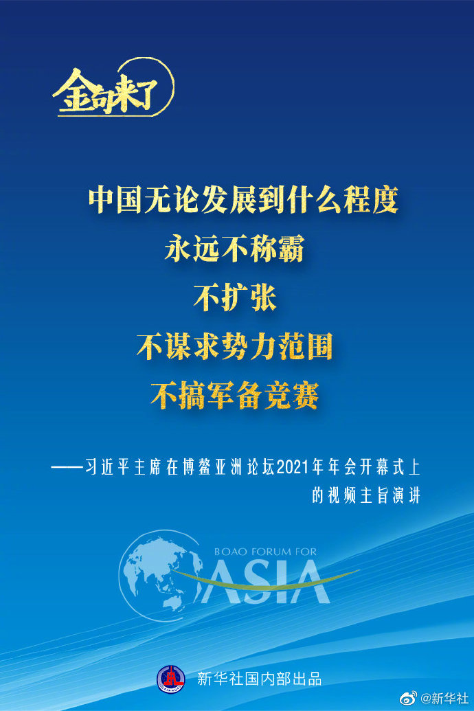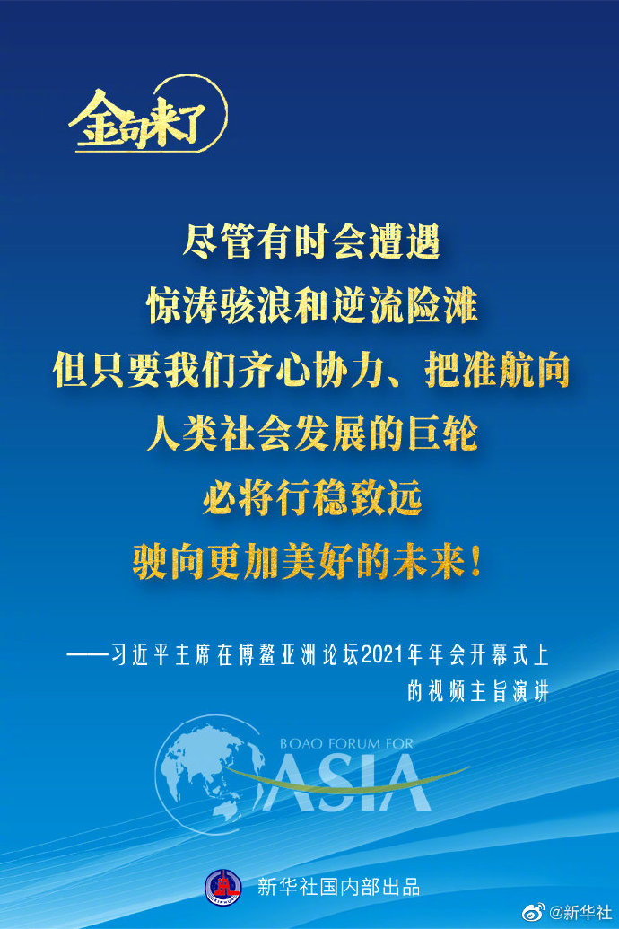 4月20日,習(xí)近平主席在博鰲亞洲論壇2021年年會開幕式上以視頻方式發(fā)表主旨演講。一起來看演講金句! JDu安康新聞網(wǎng)