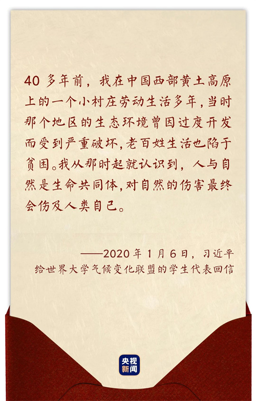 2020年1月6日,習近平在給世界大學氣候變化聯(lián)盟的學生代表回信時,這樣回憶道——