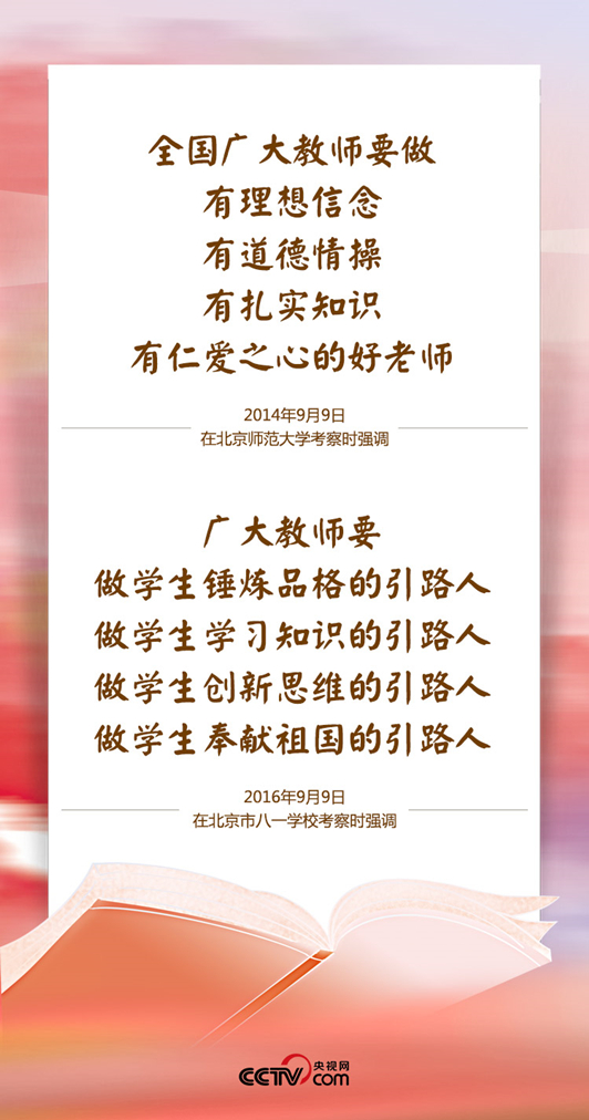 “今天的學生就是未來實現(xiàn)中華民族偉大復(fù)興中國夢的主力軍,廣大教師就是打造這支中華民族‘夢之隊’的筑夢人。”對教師群體,習近平總書記飽含敬意,也滿懷期待。