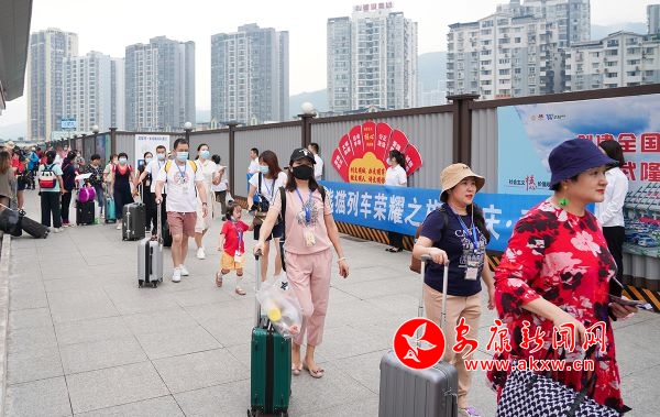 9月14日,由成都始發(fā)的Y582次“熊貓專(zhuān)列”,搭載著230余名游客,順利抵達(dá)武隆火車(chē)站,開(kāi)啟兩天一晚的世界自然遺產(chǎn)之旅。這也是新一輪疫情后,首列從四川成都發(fā)往重慶武隆的跨省游專(zhuān)列,標(biāo)志著武隆旅游業(yè)復(fù)蘇,并由此進(jìn)入“快車(chē)道”。