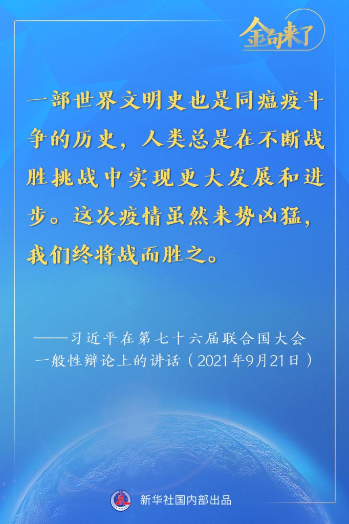 國(guó)家主席習(xí)近平9月21日在北京以視頻方式出席第七十六屆聯(lián)合國(guó)大會(huì)一般性辯論并發(fā)表題為《堅(jiān)定信心 共克時(shí)艱 共建更加美好的世界》的重要講話。一起來(lái)看金句↓ jAv安康新聞網(wǎng)