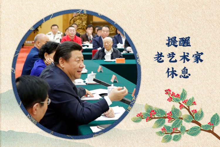 2014年10月15日,習(xí)近平總書記主持召開文藝工作座談會,媒體捕捉到這樣一個現(xiàn)場細(xì)節(jié)。當(dāng)文藝界代表們發(fā)言結(jié)束,總書記準(zhǔn)備發(fā)表講話時,他望了望90歲高齡的中國紅樓夢學(xué)會名譽(yù)會長馮其庸先生,隨后對大家說:“今天出席座談會的不少老藝術(shù)家年事已高,大家如果累了,就到休息室休息或者走動走動。”