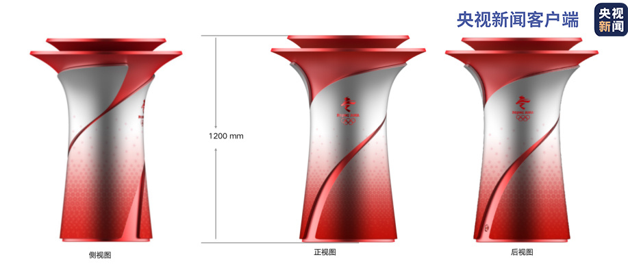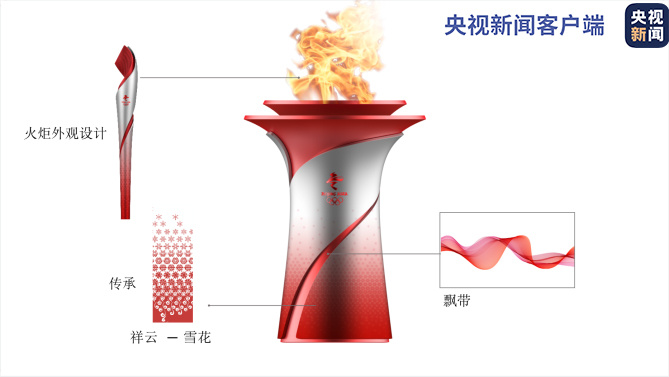 北京冬奧會儀式火種臺以“承天載物”為設(shè)計理念,創(chuàng)意靈感來自中國傳統(tǒng)青銅禮器——尊,造型風(fēng)格與火炬、火種燈和諧一致。儀式火種臺采用了尊的曲線造型,基座沉穩(wěn),象征“地載萬物”。頂部舒展開闊,寓意著迎接純潔的奧林匹克火種。祥云紋路由下而上漸化為雪花,象征了“雙奧之城”的精神傳承。紅色絲帶飄逸飛舞、環(huán)繞向上,與火炬設(shè)計和諧統(tǒng)一。紅銀交映的色彩,象征了傳統(tǒng)與現(xiàn)代、科技與激情的融合。