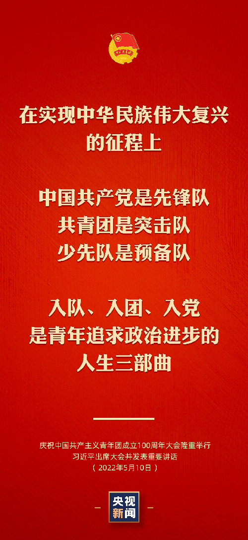 習(xí)近平總書記指出,在實現(xiàn)中華民族偉大復(fù)興的征程上,中國共產(chǎn)黨是先鋒隊,共青團是突擊隊,少先隊是預(yù)備隊。入隊、入團、入黨,是青年追求政治進步的“人生三部曲”。 MSx安康新聞網(wǎng)