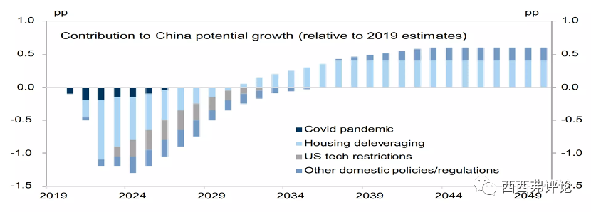 根據(jù)高盛的分析,在2022年,房地產(chǎn)業(yè)去杠桿對中國增長的負(fù)面影響,是疫情因素的數(shù)倍。