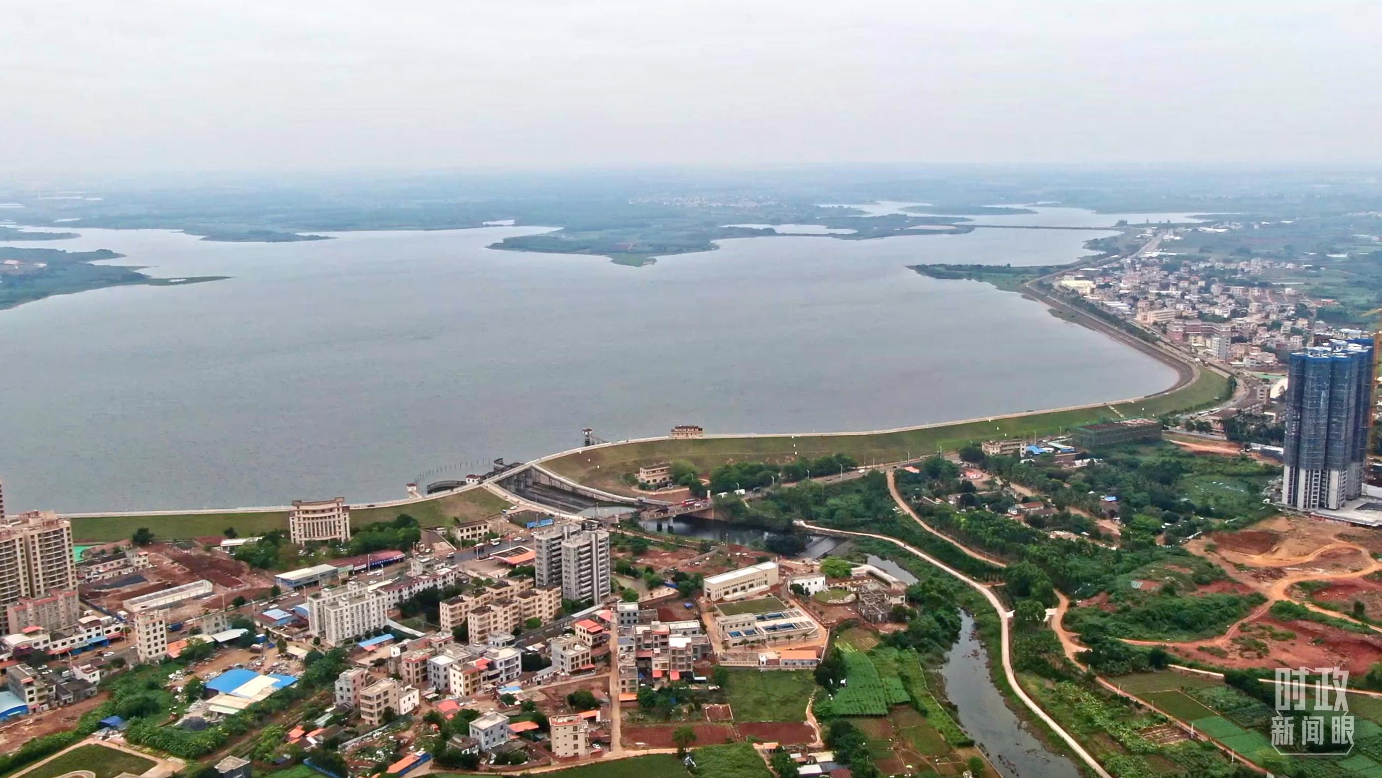 △水庫(kù)沿岸的城市。(總臺(tái)央廣記者潘毅拍攝)