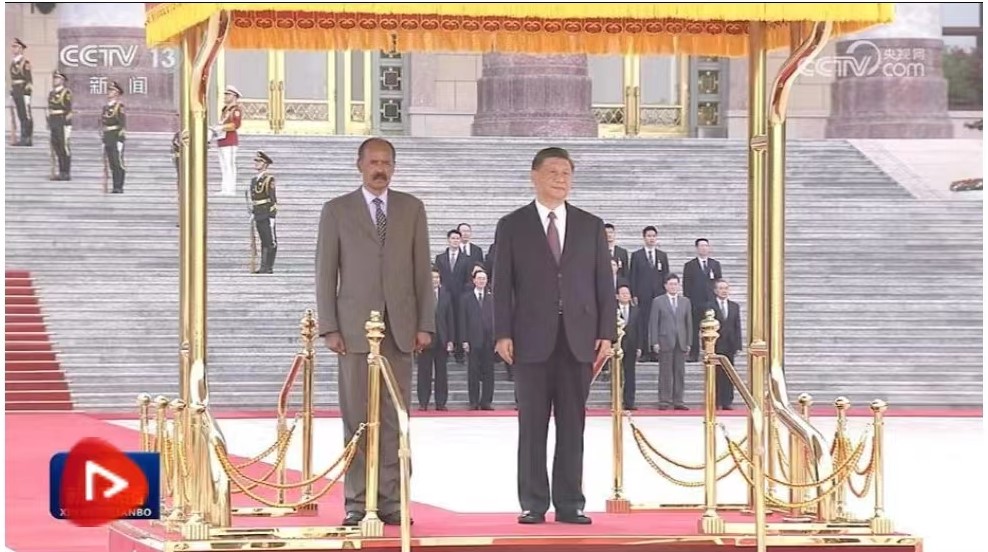 央視網(wǎng)消息(新聞聯(lián)播):國(guó)家主席習(xí)近平15日下午在人民大會(huì)堂東門外廣場(chǎng)舉行儀式,歡迎厄立特里亞國(guó)總統(tǒng)伊薩亞斯·阿費(fèi)沃基對(duì)我國(guó)進(jìn)行國(guó)事訪問。