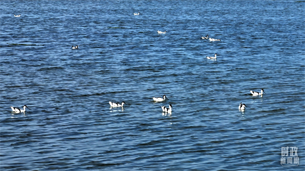 △鹽湖棲息的鳥(niǎo)類。(總臺(tái)記者裴大偉、康曉宇拍攝)