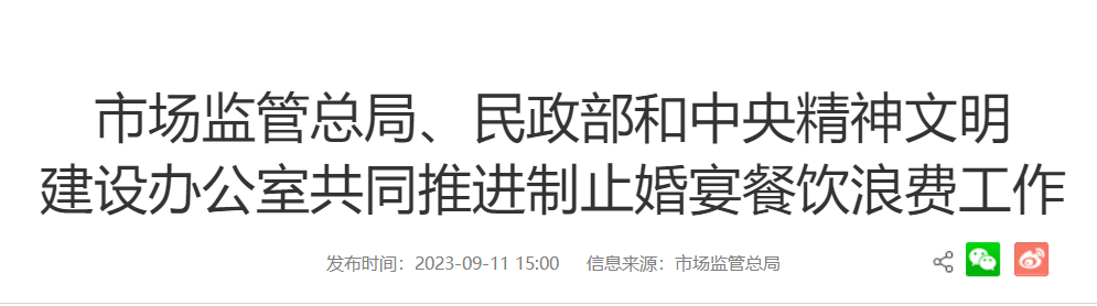 《通知》強(qiáng)調(diào),各級(jí)市場(chǎng)監(jiān)管部門(mén)、民政部門(mén)和文明辦要加強(qiáng)制度供給,強(qiáng)化對(duì)婚宴服務(wù)經(jīng)營(yíng)者的日常監(jiān)管和行政指導(dǎo),做好新人結(jié)婚登記時(shí)的提示提醒,積極營(yíng)造浪費(fèi)可恥、節(jié)約為榮的氛圍,促進(jìn)制止餐飲浪費(fèi)成為全社會(huì)的行動(dòng)自覺(jué)。