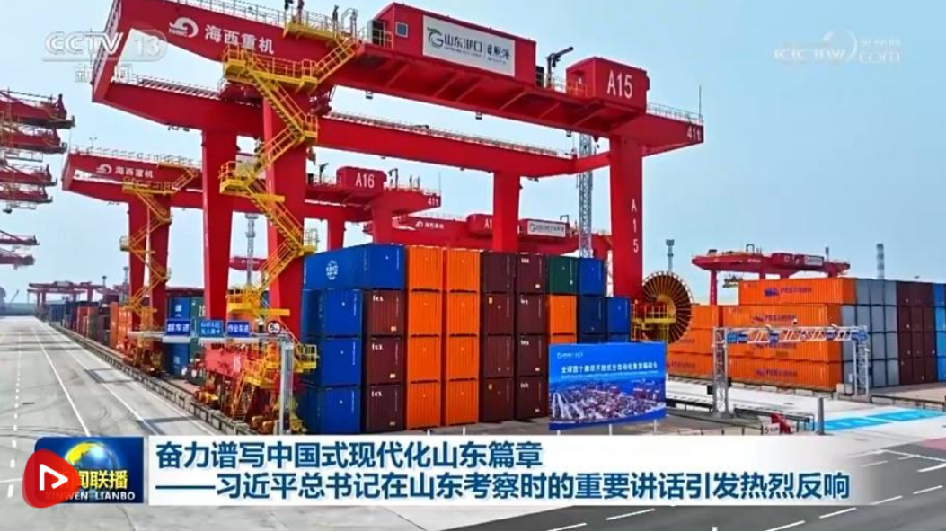 黃海之濱,山東日照港全自動(dòng)化集裝箱碼頭上無人駕駛集裝箱卡車往來穿梭。習(xí)近平總書記首先來到這里考察,他指出,日照港近年來推進(jìn)科技創(chuàng)新,將傳統(tǒng)港口改造升級(jí)為現(xiàn)代化港口,不僅貨物吞吐量躋身全國前列,還積累了通過傳統(tǒng)產(chǎn)業(yè)改造升級(jí)發(fā)展新質(zhì)生產(chǎn)力的經(jīng)驗(yàn),值得肯定。