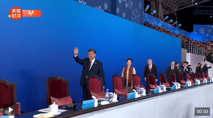 19時58分,在《和平——命運(yùn)共同體》的樂曲聲中,習(xí)近平和夫人彭麗媛,同國際奧委會主席巴赫、亞奧理事會第一副主席霍震霆等步入主席臺,向觀眾揮手致意。全場響起長時間的熱烈掌聲。