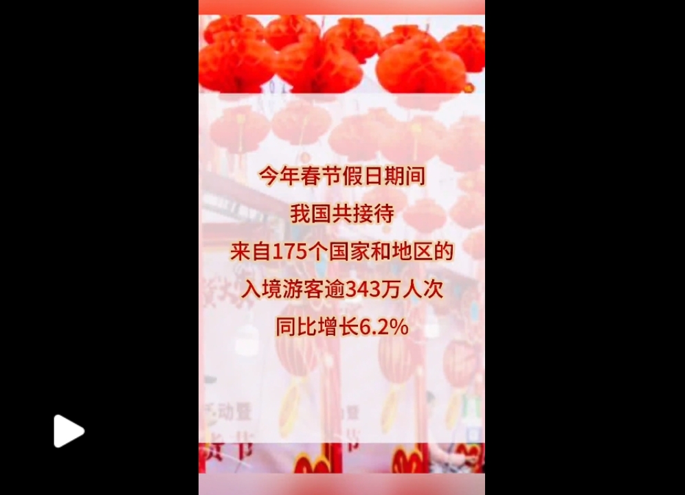 首個“非遺版”春節(jié),普天同慶,五洲同春。“來華體驗中國年”,是其中一道動人的風景。中國的高鐵上、景區(qū)里,時?梢娡鈬慰偷纳碛啊(shù)據(jù)顯示,今年春節(jié)假日期間,我國共接待來自175個國家和地區(qū)的入境游客逾343萬人次,同比增長6.2%。qnh安康新聞網(wǎng)