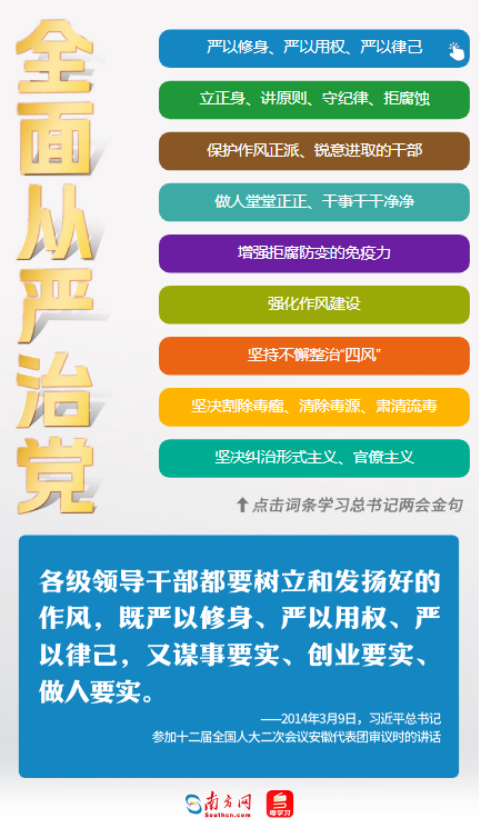 全面從嚴(yán)治黨,是習(xí)近平總書記一直以來(lái)都非常重視的話題。他站在戰(zhàn)略和全局的高度,以高遠(yuǎn)的歷史眼光看待全面從嚴(yán)治黨、堅(jiān)定不移推進(jìn)反腐敗斗爭(zhēng)。