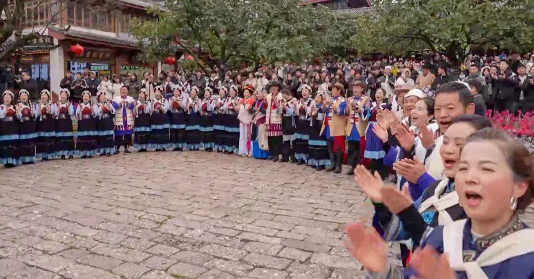 △3月19日,云南麗江古城各族群眾熱情歡迎習(xí)近平總書記。