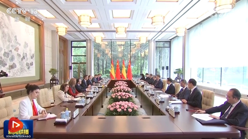 桑切斯表示,西班牙和中國建立全面戰(zhàn)略伙伴關(guān)系20年來,始終相互尊重、友好合作,兩國關(guān)系不斷深化發(fā)展。在習近平主席領(lǐng)導(dǎo)下,中國取得卓越發(fā)展成就,為世界繁榮穩(wěn)定作出重大貢獻。西班牙重視對華關(guān)系,堅定不移奉行一個中國政策,愿同中方保持高層交往,深化貿(mào)易、投資、科技創(chuàng)新、綠色能源等領(lǐng)域互利合作,加強教育、文化、旅游領(lǐng)域交流,推動兩國關(guān)系邁上新臺階。中國是歐盟重要合作伙伴,西班牙始終支持歐中關(guān)系穩(wěn)定發(fā)展。歐方堅持開放自由貿(mào)易,致力于維護多邊主義,反對單邊加征關(guān)稅。貿(mào)易戰(zhàn)不會有贏家。面對復(fù)雜嚴峻的國際形勢,西班牙和歐盟愿與中方加強溝通協(xié)作,維護國際貿(mào)易秩序,攜手應(yīng)對氣候變化、貧困等挑戰(zhàn),維護國際社會共同利益。
