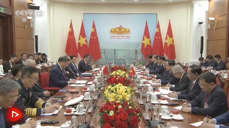 習(xí)近平指出,再次對(duì)越南進(jìn)行國事訪問,親眼見證了越南革新事業(yè)取得的新成就,親身感受到中越友好的深厚根基。當(dāng)前,中國正在以中國式現(xiàn)代化全面推進(jìn)強(qiáng)國建設(shè)、民族復(fù)興偉業(yè),越南即將開啟民族發(fā)展新紀(jì)元,雙方都處在各自發(fā)展振興的關(guān)鍵時(shí)期。面對(duì)變亂交織的國際形勢,中越兩國要堅(jiān)定道路自信和制度自信,加強(qiáng)團(tuán)結(jié)協(xié)作,持續(xù)深化具有戰(zhàn)略意義的中越命運(yùn)共同體建設(shè),攜手邁向現(xiàn)代化,為世界注入更多穩(wěn)定性和正能量。