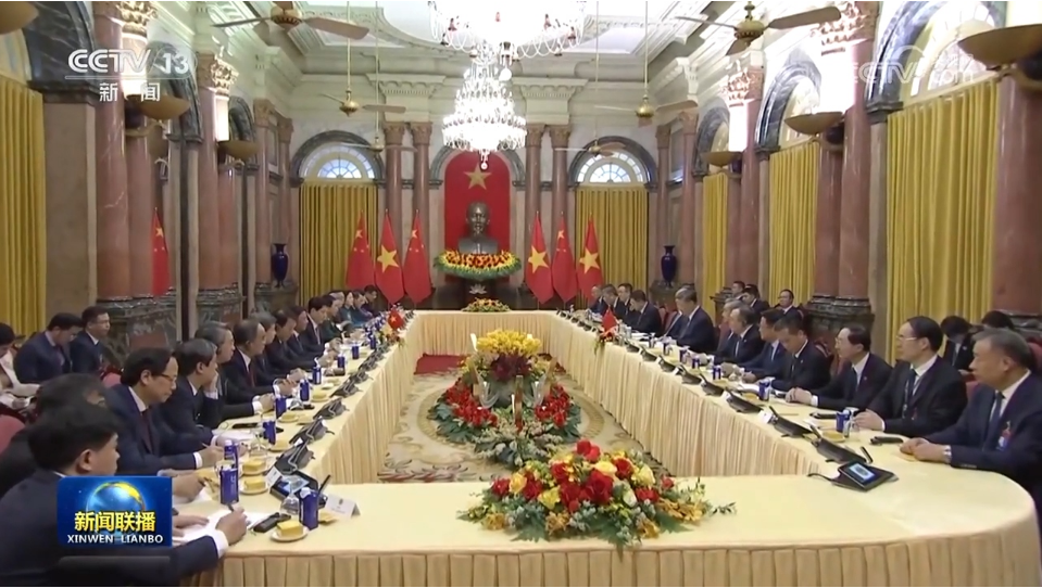 習近平強調(diào),中越雙方要以中越友好合作的穩(wěn)定性和社會主義制度的優(yōu)越性應對外部形勢的不確定性,推動中越命運共同體航船沿著正確航道破浪前行。政治上要把住前行之舵,保持高層戰(zhàn)略溝通,加強治黨治國經(jīng)驗互學互鑒,共同提高黨的領導能力,攜手走穩(wěn)走好各自社會主義道路。安全上要鑄牢團結之錨,以兩國外交、國防、公安“3+3”戰(zhàn)略對話機制升格為契機,持續(xù)深化防務和執(zhí)法安全合作,中方支持越方籌備好越共十四大,支持越方維護國家主權、安全、發(fā)展利益。經(jīng)濟上要執(zhí)穩(wěn)合作之楫,加強發(fā)展戰(zhàn)略對接,落實好共建“一帶一路”倡議和“兩廊一圈”框架對接合作規(guī)劃,深化鐵路、公路、航空多維互聯(lián)互通,保障產(chǎn)業(yè)鏈供應鏈穩(wěn)定暢通,拓展5G、人工智能、綠色發(fā)展等新興領域合作,以新質(zhì)生產(chǎn)力賦能兩國全方位合作格局。人文上要揚起友誼之帆,辦好今年“中越人文交流年”系列活動,實施更多“小而美”民生項目,通過文化、旅游、媒體、地方等交流,讓中越友好更加深入人心。