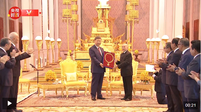 獨家視頻丨習(xí)近平接受“柬埔寨王國民族獨立大項鏈級勛章”