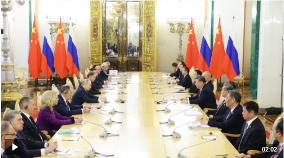 普京說:“尊敬的習(xí)近平主席,我的好朋友,俄中兩國人民在艱苦戰(zhàn)爭歲月中結(jié)成的戰(zhàn)斗情誼,是當(dāng)今俄中新時代全面戰(zhàn)略協(xié)作伙伴關(guān)系的根本基石之一。我們發(fā)展雙邊關(guān)系是為了造福兩國人民,而非針對任何第三方。構(gòu)建睦鄰友好、深化友誼、拓展合作,這是俄羅斯與中國基于戰(zhàn)略協(xié)作作出的共同選擇。”