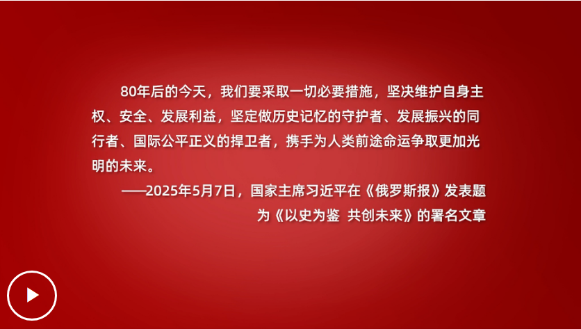 展望未來(lái),在變亂交織的世界中,習(xí)近平強(qiáng)調(diào)“以史為鑒”,堅(jiān)定做歷史記憶的守護(hù)者、發(fā)展振興的同行者、國(guó)際公平正義的捍衛(wèi)者,攜手為人類(lèi)前途命運(yùn)爭(zhēng)取更加光明的未來(lái)。