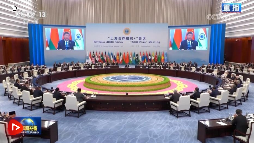 9月1日下午,“上海合作組織+”會議在天津梅江會展中心舉行。國家主席習(xí)近平主持會議并發(fā)表題為《凝聚上合力量 完善全球治理》的重要講話。