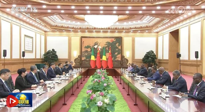 習近平強調(diào),剛果(布)擔任中非合作論壇非方共同主席國以來,同中方一道積極推動北京峰會成果落實,取得可喜成績。中方愿同非方共同實施好“十大伙伴行動”,打造綠色產(chǎn)業(yè)、電子商務(wù)和支付、科技、人工智能等新增長點,推動中非合作提質(zhì)升級。當前國際形勢變亂交織,中國和非洲作為全球南方重要成員,要肩負起捍衛(wèi)國際公平正義、維護世界和平、促進共同發(fā)展的歷史責任,攜手推動構(gòu)建人類命運共同體。