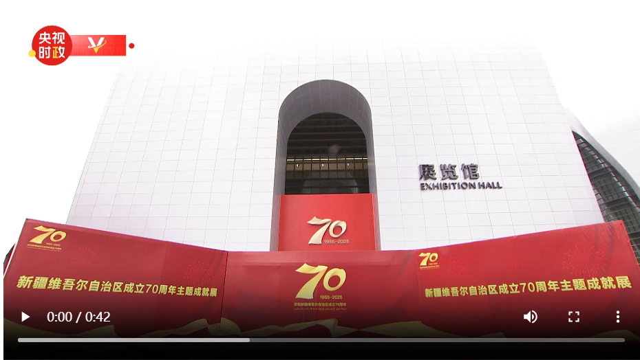 上午10時30分許,習(xí)近平等來到烏魯木齊文化中心展覽館,走進(jìn)展廳參觀成就展。展覽通過“萬方樂奏換新天”“潮涌天山展宏圖”“美麗新疆鑄輝煌”3個部分,全景展現(xiàn)了70年來在中國共產(chǎn)黨堅(jiān)強(qiáng)領(lǐng)導(dǎo)下、在全國各地大力支援下,新疆各族人民團(tuán)結(jié)一心、艱苦奮斗、頑強(qiáng)拼搏取得的輝煌成就。