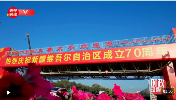 中共中央總書記、國家主席、中央軍委主席習近平率中央代表團23日下午乘專機抵達烏魯木齊,出席新疆維吾爾自治區(qū)成立70周年慶;顒。14時20分許,習近平乘坐的專機在天山國際機場降落,等候在停機坪的新疆各族各界群眾熱烈歡呼。習近平走下舷梯時,少先隊員獻上鮮花。各族群眾代表身著民族服飾,載歌載舞,歡迎總書記的到來,表達對總書記的衷心祝福。