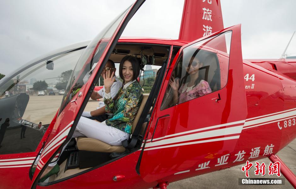 3月26日,隨著三亞亞龍通用航空公司的兩架紅色直升機在海南?谳d客啟航。標志著低空觀光游覽項目正式進駐?,游客最低花費500元人民幣即可體驗低空飛行。據了解,這種由美國羅賓遜直升機公司生產的R44雷鳥II型直升機,可乘坐4人(含飛行員),加滿油可以飛行兩個半小時,航程約600公里。目前該公司在?谝呀涢_辟了?谑袇^(qū)、世紀大橋、火山口、假日海灘、萬綠園等景點觀光飛行。圖為游客體驗直升機低空旅游。中新社發(fā) 駱云飛 攝dc7安康新聞網 dc7安康新聞網