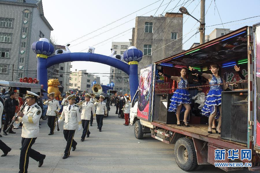 “受攀比之苦的是經(jīng)濟條件一般的村民。”吳金程說,普通收入的農(nóng)民仍占大多數(shù),但受這種風氣影響,很多人“寧窮一年,不窮一天”,寧愿東挪西湊去借錢也要擺排場。在浙江桐廬,一些群眾反映“時節(jié)”難過,“上半年辛辛苦苦外出打工掙錢,下半年無可奈何回家過節(jié)花錢,結(jié)果一年到頭,兩手空空”。圖為福建省長樂市一家人舉辦的出殯儀式上,樂隊和舞蹈隊同場演出。據(jù)村民介紹,這場喪事花費至少上百萬元(4月5日攝)。 新華社記者 姜克紅 攝 圖片來源:新華網(wǎng)