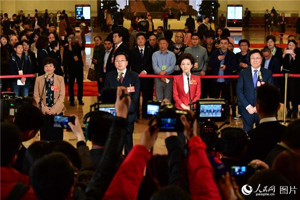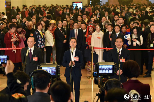 3月5日上午8:05,十三屆全國人民代表大會(huì)第二次會(huì)議在人民大會(huì)堂舉行首場“代表通道”。在首場“代表通道”中,8位全國人大代表接受了記者采訪。(人民網(wǎng)記者 翁……