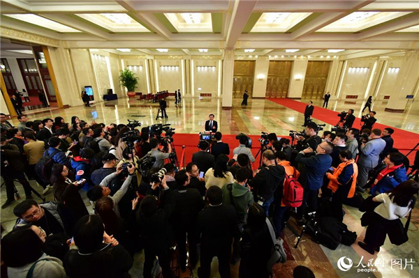 3月3日下午,全國政協(xié)十三屆二次會(huì)議開幕會(huì)結(jié)束后,2019年全國兩會(huì)“部長通道”在人民大會(huì)堂正式開啟,部長們在這里直面熱點(diǎn),回應(yīng)關(guān)切。人民網(wǎng)記者 于凱 攝……