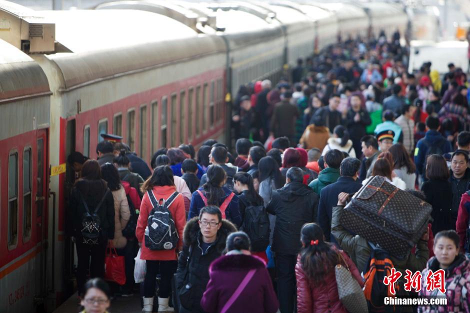 2月23日,山西太原火車站,民眾正在排隊(duì)等待乘車。隨著農(nóng)歷春節(jié)“大年”結(jié)束,中國(guó)鐵路迎來(lái)客流高峰。中國(guó)鐵路總公司預(yù)計(jì),當(dāng)日中國(guó)鐵路發(fā)送旅客925萬(wàn)人次。 張……